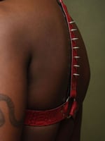 This chest harness buckles up at the front from the Center spine O-ring. With 15mm spike stud detailing down the spine. This harness looks great worn over your body or latex for your next kink event. Or you can wear over a t-shirt & pair with jeans for a more casual look.